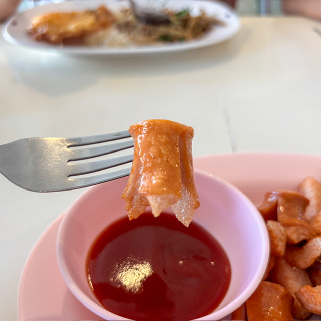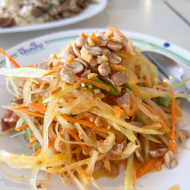 เมนูอาหารแกเรียบง่ายมากนะครับ และอย่าได้ไปบอกเผ็ดมากเผ็ดน้อยกับเฮียแก เพราะเค้าจะอธิบายว่า ของเค้าเป็นแบบไหน อะไรยังไง ผมสั่งไส้กรอกมากินเล่นก่อน กับส้มตำไทย ผมมาทีไร สองจานนี้สั่งตลอด แต่ด้วยความมาตรฐานแกเยอะ รสชาติของแกก็จะคงที่แบบนี้มาทุกครั้ง สำหรับส้มตำ