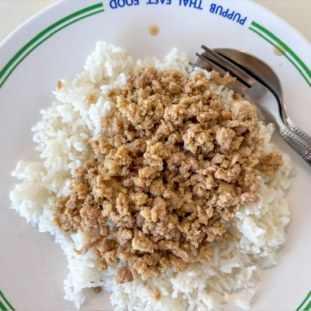 ข้าวราดเขียวหวานเป็ด กับ หมูสับซีอิ๊ว ตือเห็นแบบนี้อย่าคิดว่ามันจะชืดๆ นะครับ ผมเองยังชอบเลย หมูซีอิ๊ว ลูกผมก็ชอบ กินง่าย อร่อย