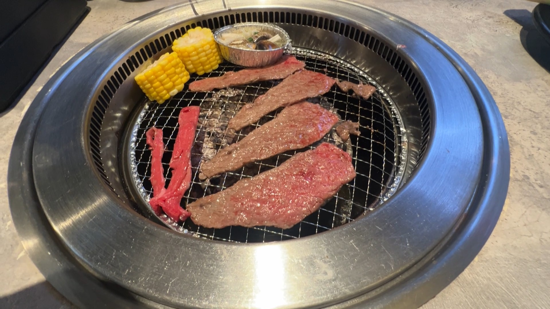 🥗 โซนผักและเครื่องเคียง (Veggie Bar) : โซนนี้อลังการมาก มีควันดรายไอซ์ลอยฟรุ้งฟริ้งดูสดชื่นสุดๆ ผักสดกรอบมีให้เลือกเพียบ แถมเครื่องเคียงก็เยอะ เอามากินแกล้มตัดเลี่ยนกับเนื้อย่างได้เพลินมากๆ สั่งเนื้อเพิ่มได้อีกรัวๆ!
