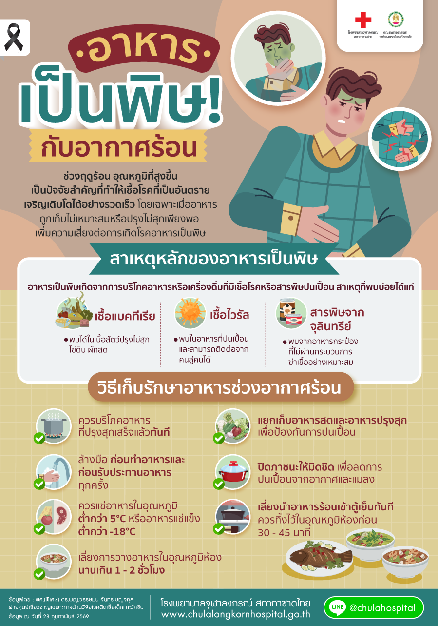 🌅ช่วงฤดูร้อน อุณหภูมิที่สูงขึ้นเป็นปัจจัยสำคัญที่ทำให้เชื้อโรคที่เป็นอันตรายเจริญเติบโตได้อย่างรวดเร็ว โดยเฉพาะเมื่ออาหารถูกเก็บไม่เหมาะสมหรือปรุงไม่สุกเพียงพอ เพิ่มความเสี่ยงต่อการเกิดโรคอาหารเป็นพิษ