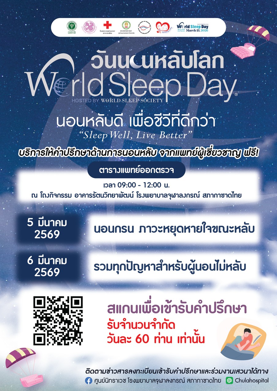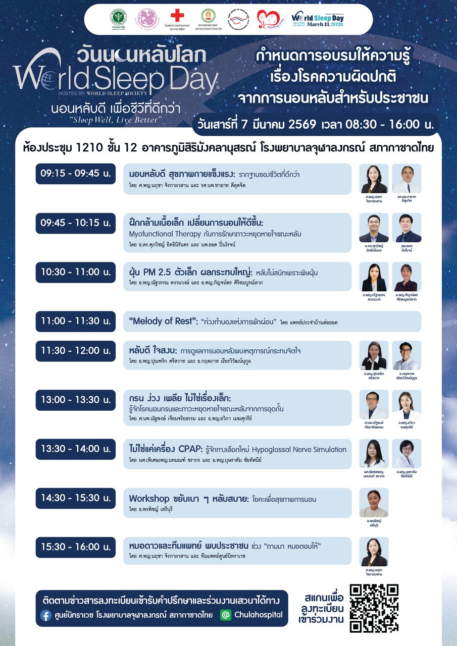 📣 ศูนย์นิทราเวช โรงพยาบาลจุฬาลงกรณ์ ขอเชิญเข้าร่วมฟังเสวนาภาคประชาชน เนื่องในวันนอนหลับโลก 2026
