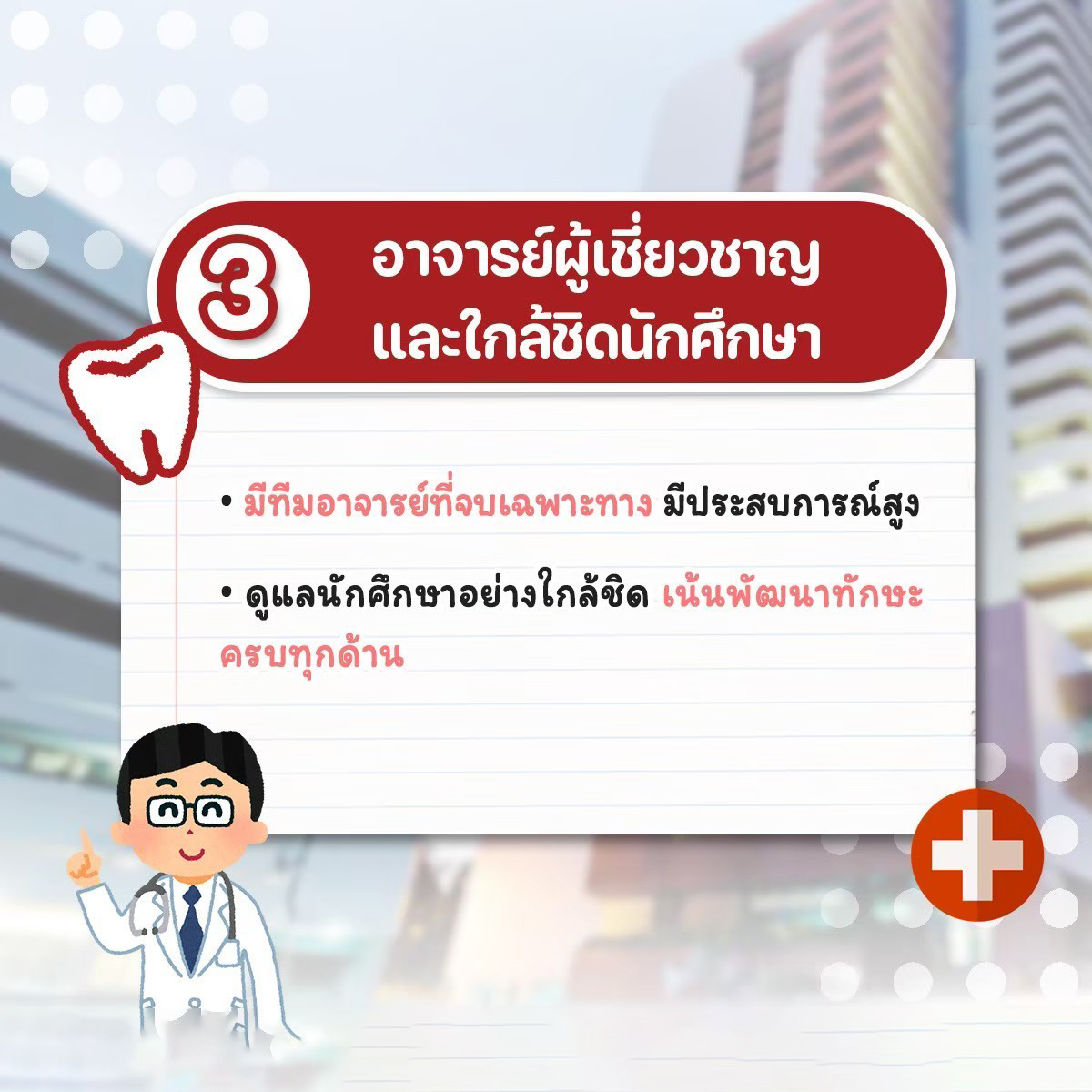 เน้นพัฒนาทักษะแบบตัวต่อตัว ครบทุกด้าน ทั้งความรู้และจรรยาบรรณ