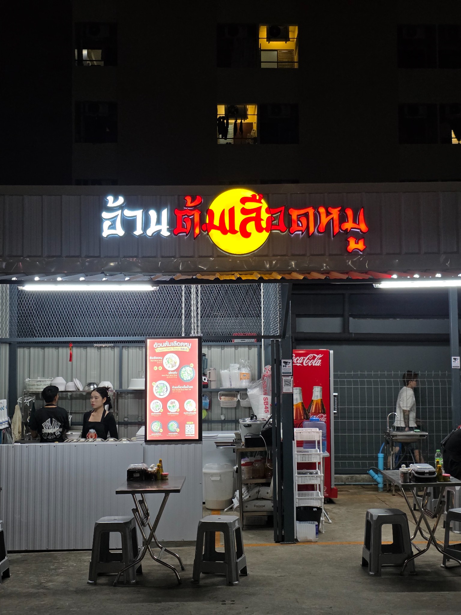 One of the popular local pork soup restaurants in Ramkhamhaeng area, Bangkok. Perfect for late-night dining with authentic Thai taste.