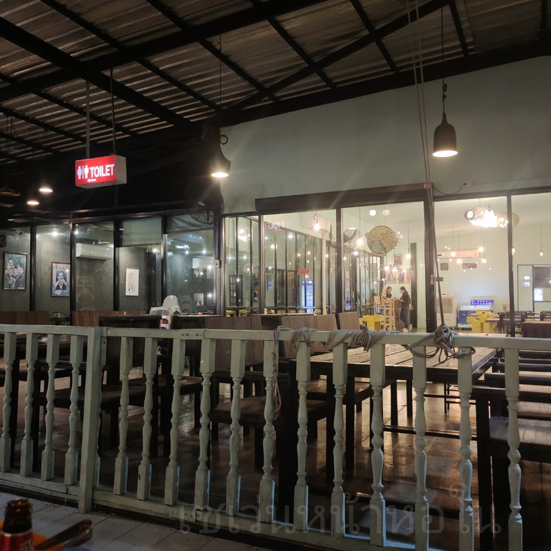 ตัวร้านกว้างขวาง มีที่นั่งทั้งโซนโอเพ่นแอร์ริมน้ำ และห้องแอร์ด้านในครับ