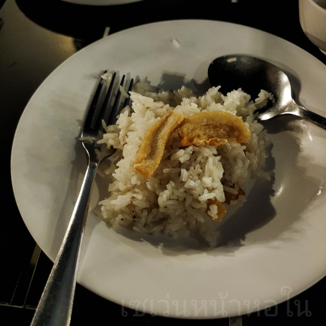 ข้าวผัดมันกากหมู รสชาติเค็มนิดๆ มีความหอมจากมันกากหมู
