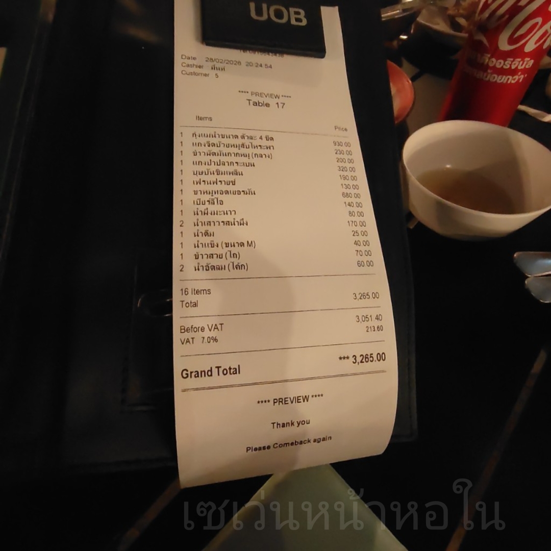 ค่าอาหารทั้งหมดในมื้อนี้ครับ รอบนี้น้องสาวจ่าย