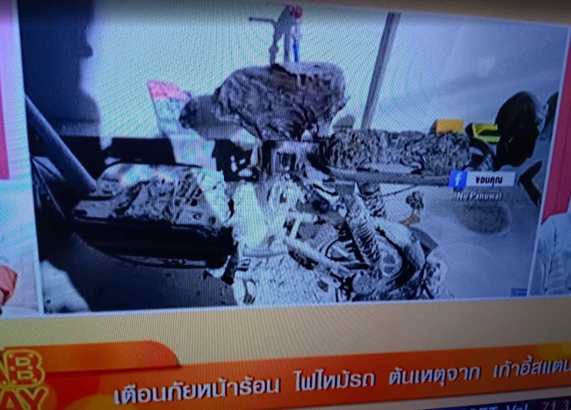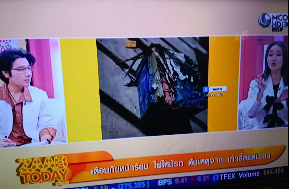 ช่วงบ่ายสองของวันนี้ ช่อง 9 นำเสนอข่าวไฟไหม้รถจากวัสดุสะแตนเลสเป็นต้นเหตุ.