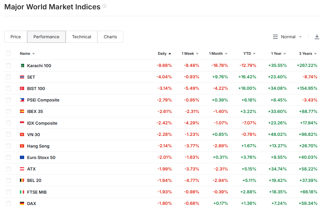 Set ลบ 4% เป็นอันดับ 2 ของโลกใน index หลัก