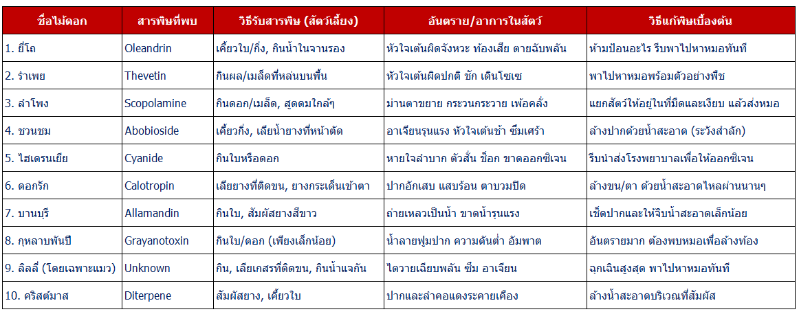 รวม 10 ไม้ประดับ (อันตรายต่อสัตว์เลี้ยง)