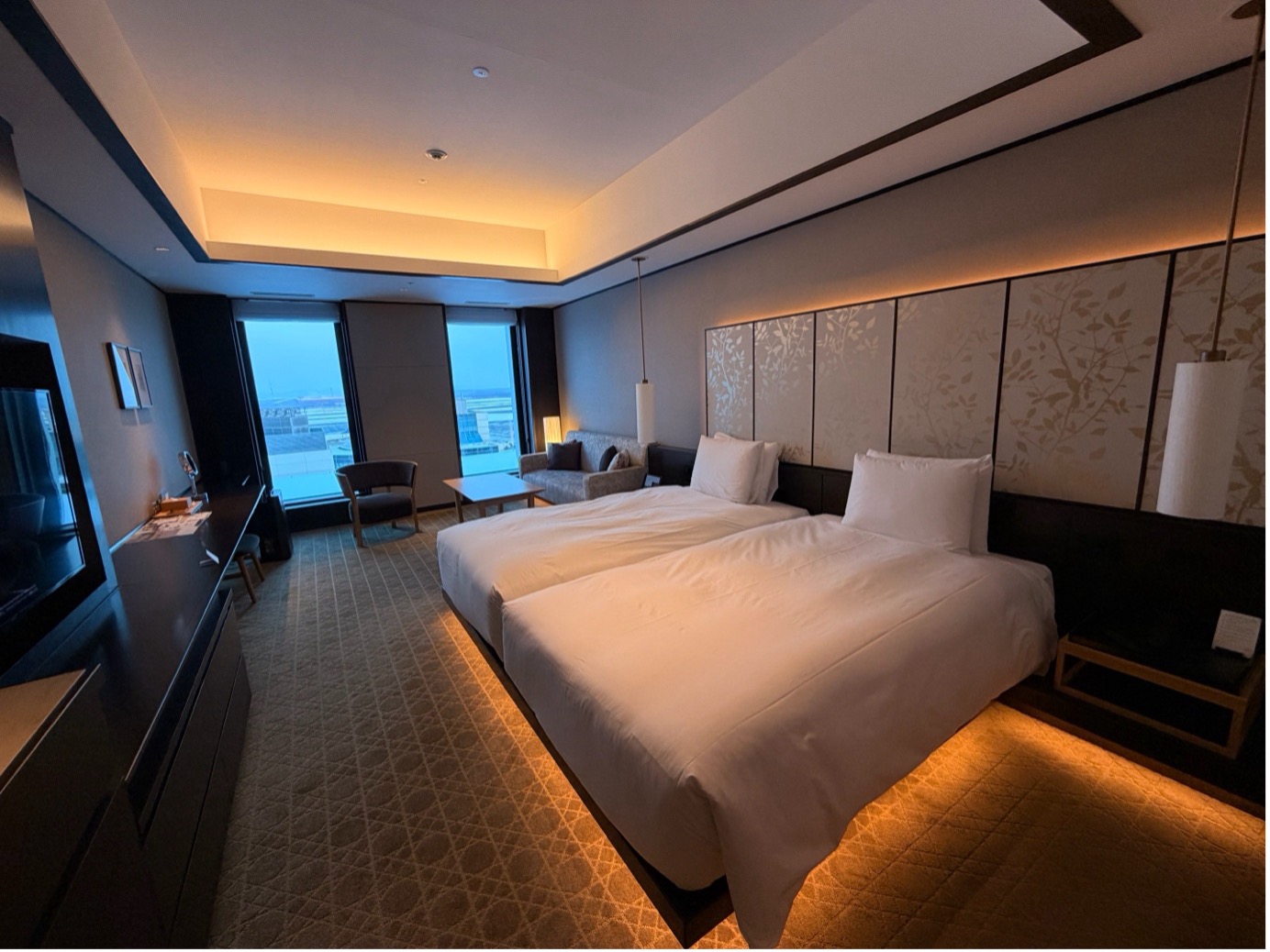 ตัวที่พักดีมาก ห้องพักมองเห็นวิวเครื่องบิน และมีออนเซนให้แช่ ผ่อนคลายครบเลย