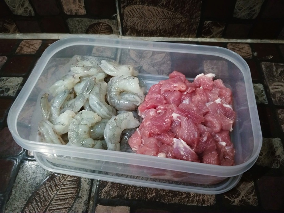 ซึ่งก็นำมาผสมกับเนื้อกุ้งส่วนหนึ่ง แล้วทำการนวดหมักปรุงรสด้วย...