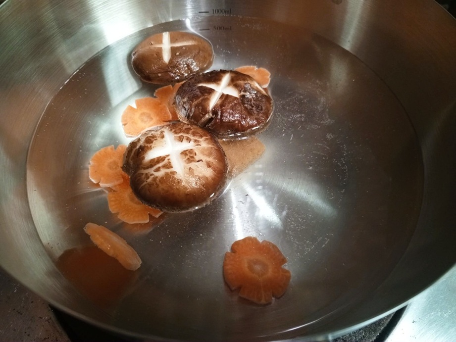 ส่วนการทำน้ำซุป เราเน้นวิธีง่ายๆ ไม่ต้องเสียเวลาและไม่ต้องปรุงอะไรมากค่ะ ทำการต้มน้ำเปล่าแล้วโยนซุปก้อนลงไปแค่นั้นคือจบเลย แต่เราก็ใส่เห็ดหอมสดและแครอทที่เหลือลงไปด้วย และตามด้วยกุ้งสดเพิ่มด้วยอีกนิดหน่อยค่ะ 😊