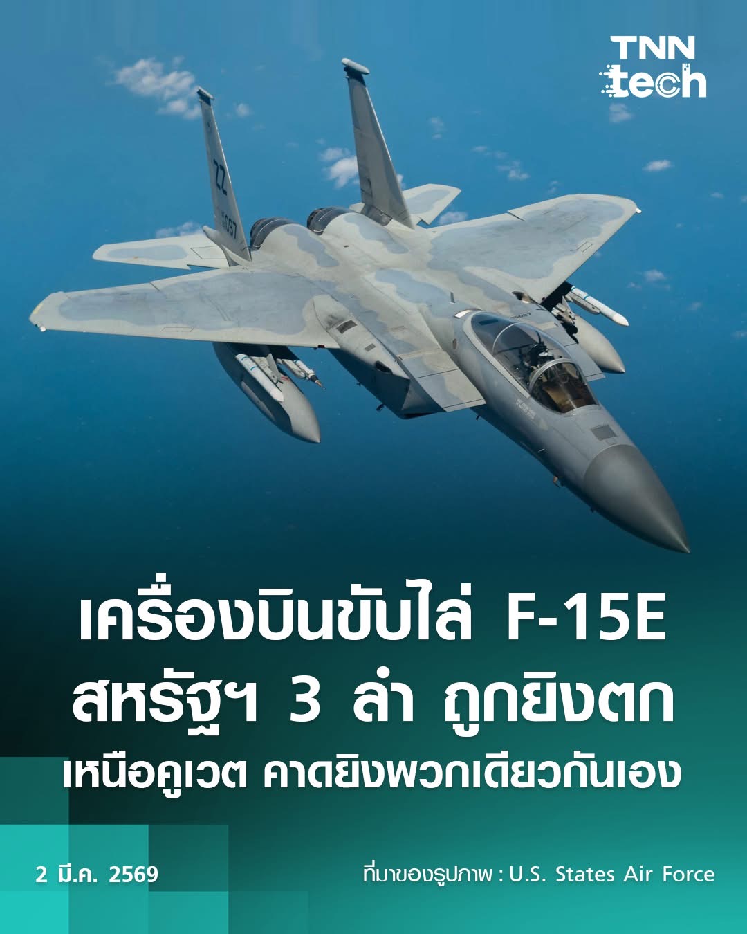 กองบัญชาการกลางสหรัฐฯ ยืนยันเหตุการณ์ F-15 ของกองทัพอากาศสหรัฐฯ จำนวน 3 ลำ ถูกระบบป้องกันภัยทางอากาศของคูเวต