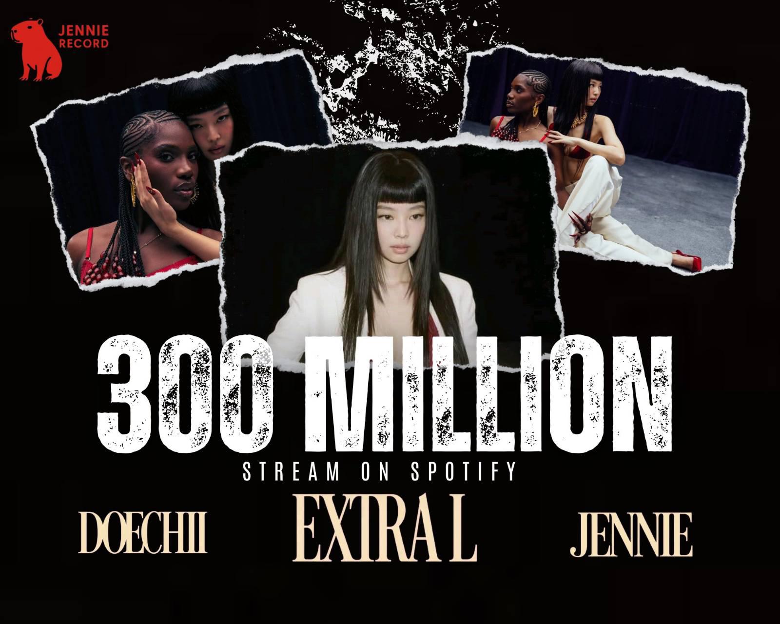 “ExtraL (feat. Doechii)” ของ JENNIE มียอดสตรีมบน Spotify ทะลุ 300 ล้านครั้ง 🎉