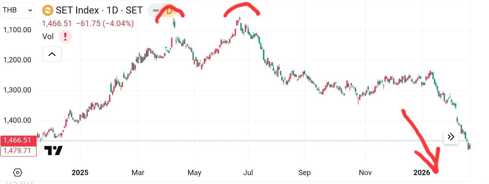ดูทรงแล้ว ผมน่าจะติดดอยยาว เพราะทางเทคนิคเป็น Double Top