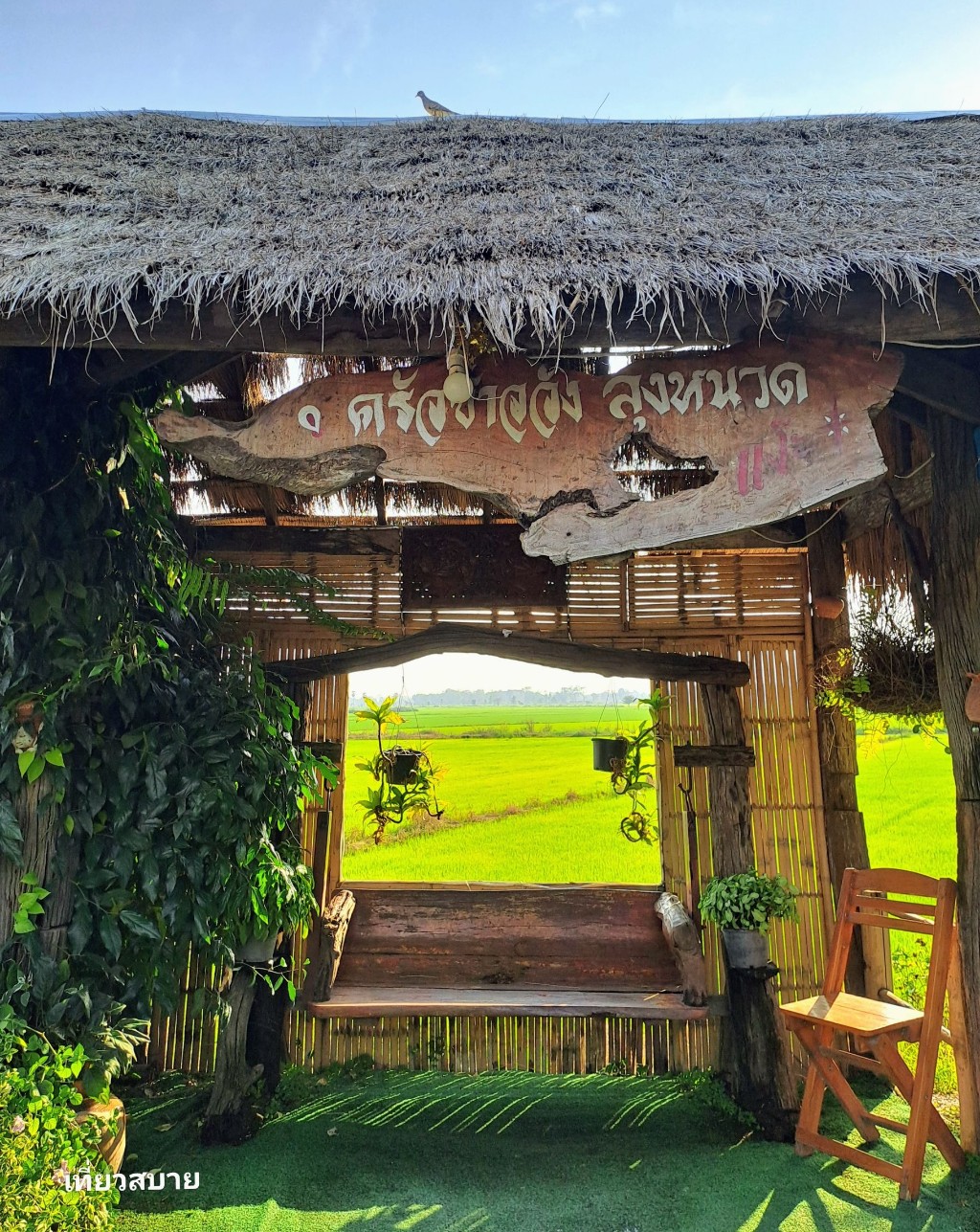ร้านตั้งอยู่กลางธรรมชาติ มองออกไปเห็นทุ่งนาเขียวๆ ให้ความรู้สึกผ่อนคลายมาก มีมุมถ่ายรูปพอสมควร