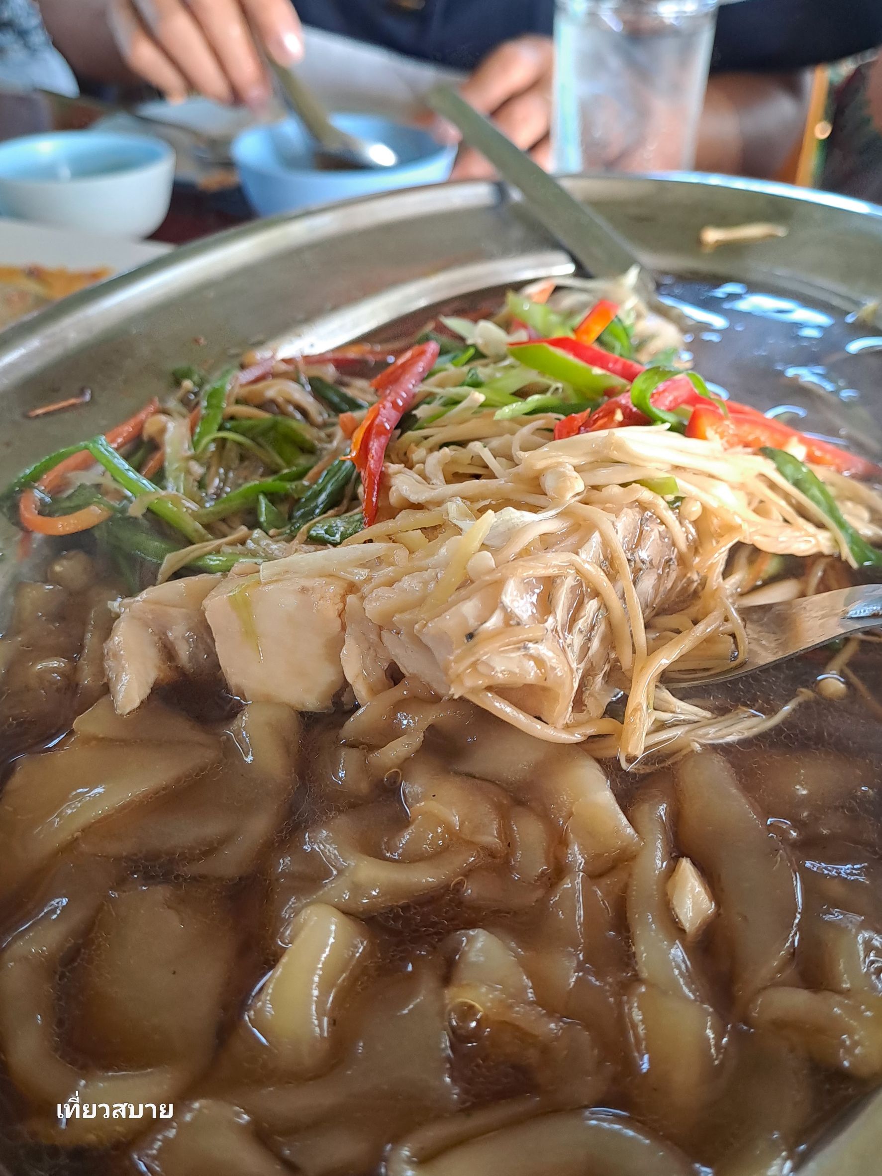ปลาบู่นึ่งซีอิ๊ว เสิร์ฟคู่เส้นใหญ่ทอด (เมนูนี้ จขกท.ชอบที่สุดค่ะ)