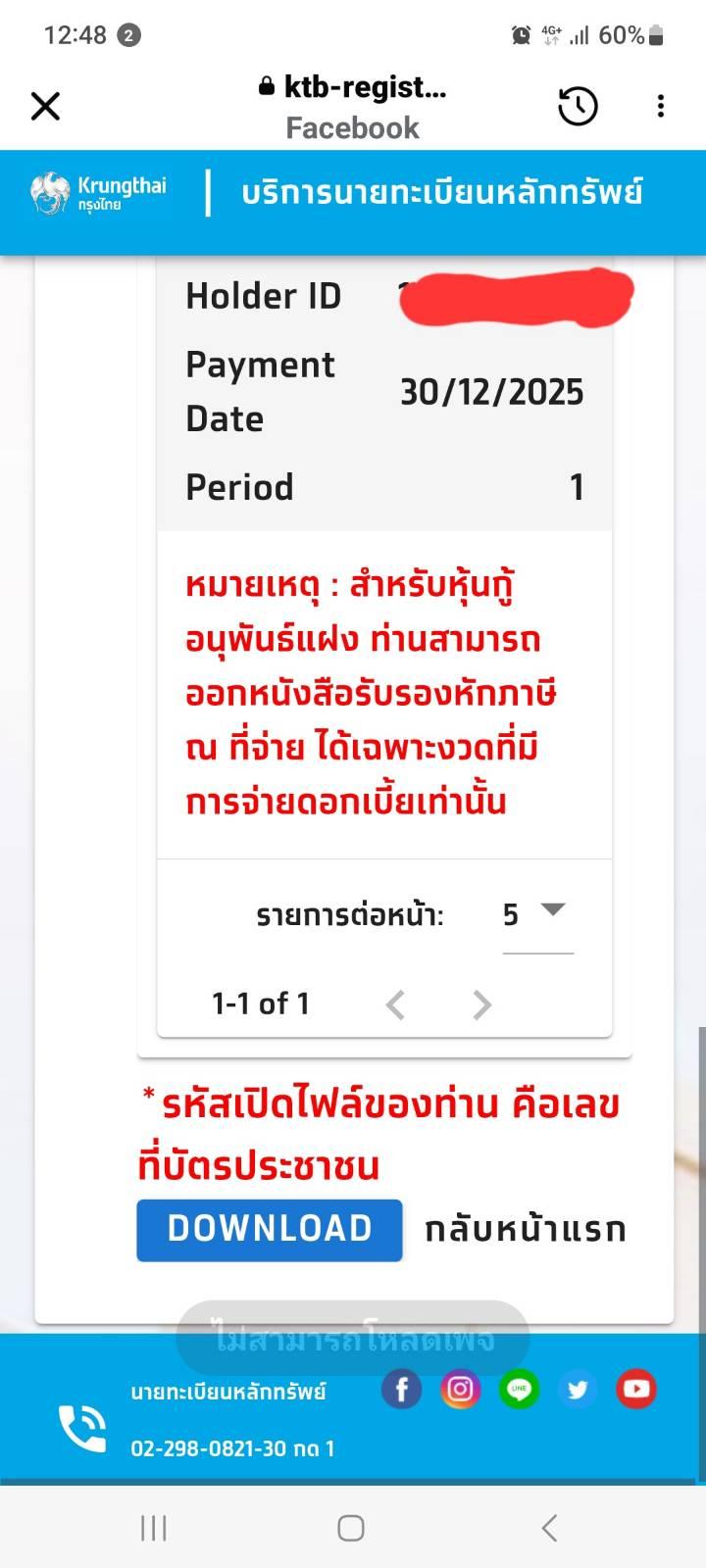 ขอเอกสารใบหักภาษีหุ้นกู้กรุงไทย
