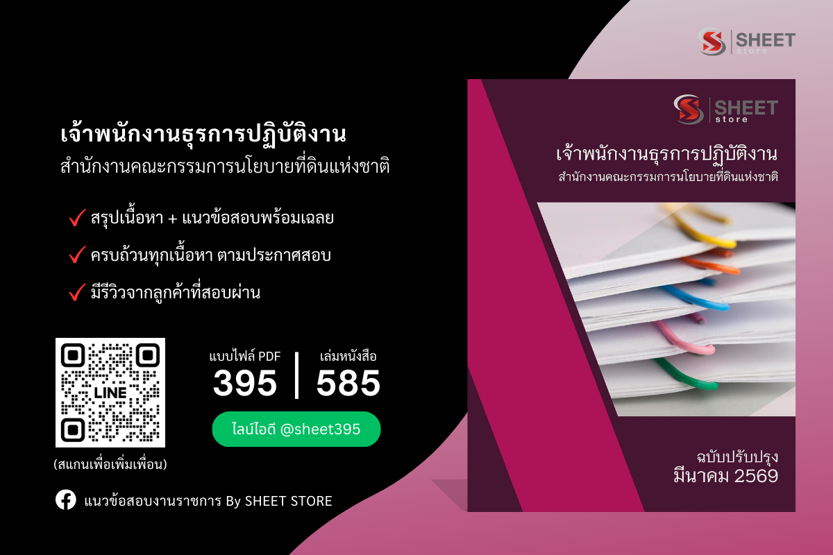แนวข้อสอบ เจ้าพนักงานธุรการปฏิบัติงาน สำนักงานคณะกรรมการนโยบายที่ดินแห่งชาติ มีนาคม 2569