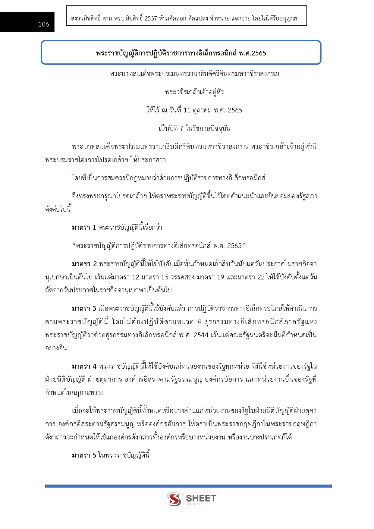 - แนวข้อสอบพระราชบัญญัติการปฏิบัติราชการทางอิเล็กทรอนิกส์ พ.ศ. 2565