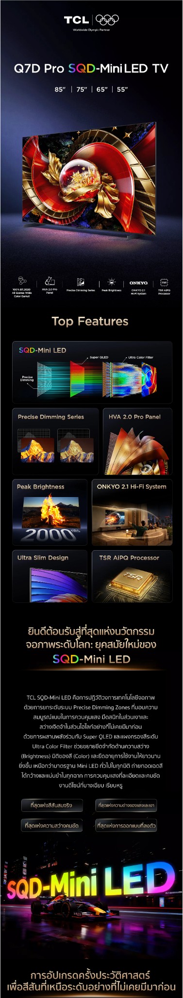รุ่นที่คนไทยน่าจะได้เห็นเร็วสุด (หรืออาจจะมีขายแล้วบางร้าน) คือ TCL Q7D Pro SQD-Mini LED TV