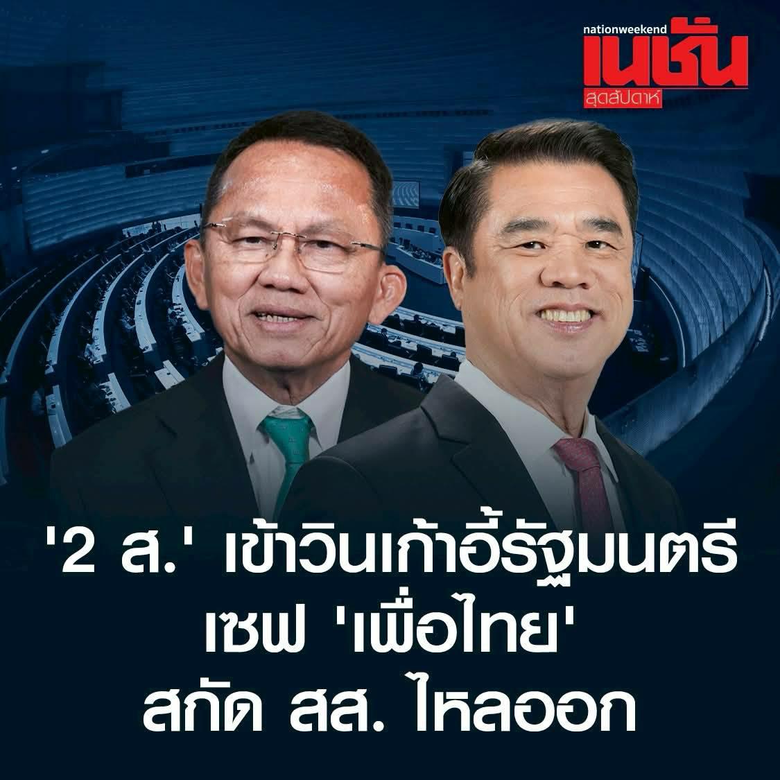 ก่อนหน้านี้ มีกระแสข่าว “ค่ายน้ำเงิน” ยื่นโนติสไม่เอารัฐมนตรีหน้าเก่า ตีกลับชื่อของ “2 ส.” ทั้ง สุริยะ จึงรุ่งเรืองกิจ แคนดิเดตนายกฯ พรรคเพื่อไทย สมศักดิ์ เทพสุทิน แกนนำพรรค เนื่องจาก “2 ส.” วนเวียนดำรงตำแหน่งรัฐมนตรีมาอย่างยาวนาน หลายยุคหลายสมัย อาจส่งผลต่อภาพลักษณ์ “ครม.อนุทิน 2”