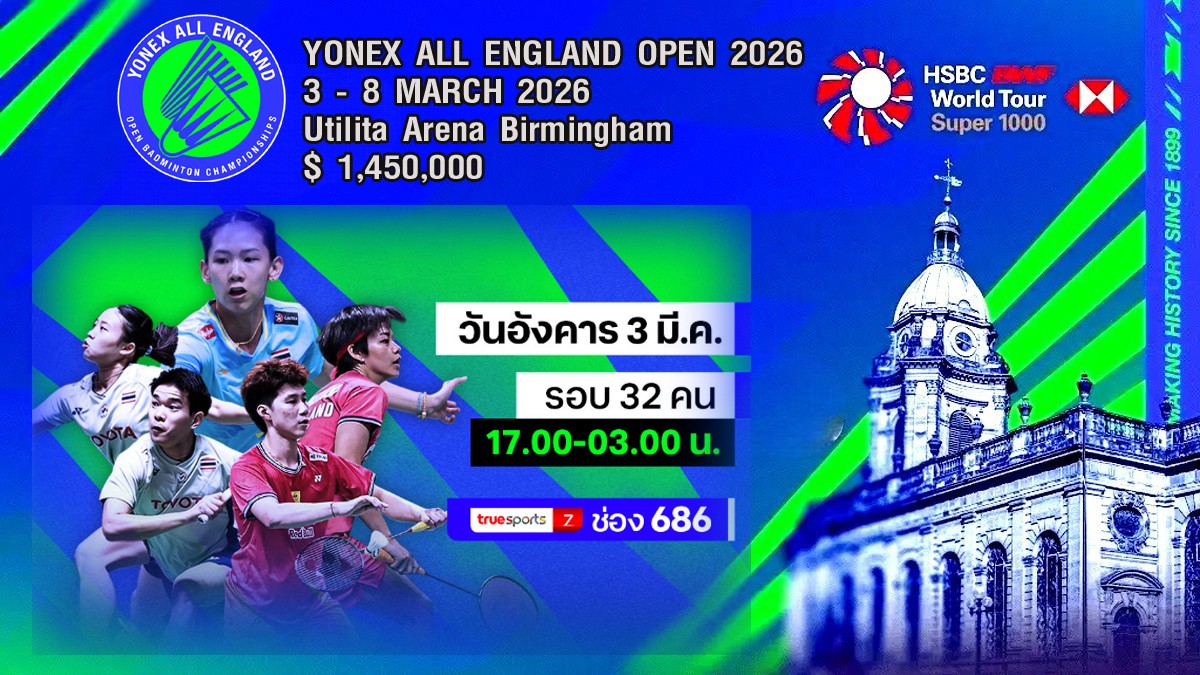 เชียร์สด ! แบดมินตัน YONEX All England Open Badminton Championships 2026 : รอบ 32 คน [Day 1(3 มี.ค.69) (คู่แรก 17.00 น.)