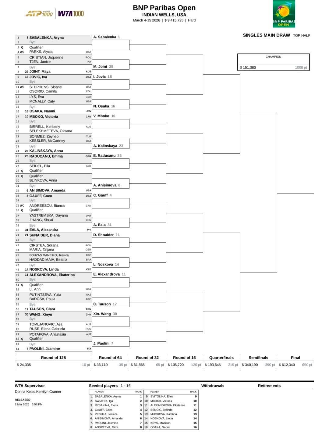 รอบแรก Indian Wells ปีนี้ เจ๊วี จับได้เจอมือจากรอบคัดเลือก