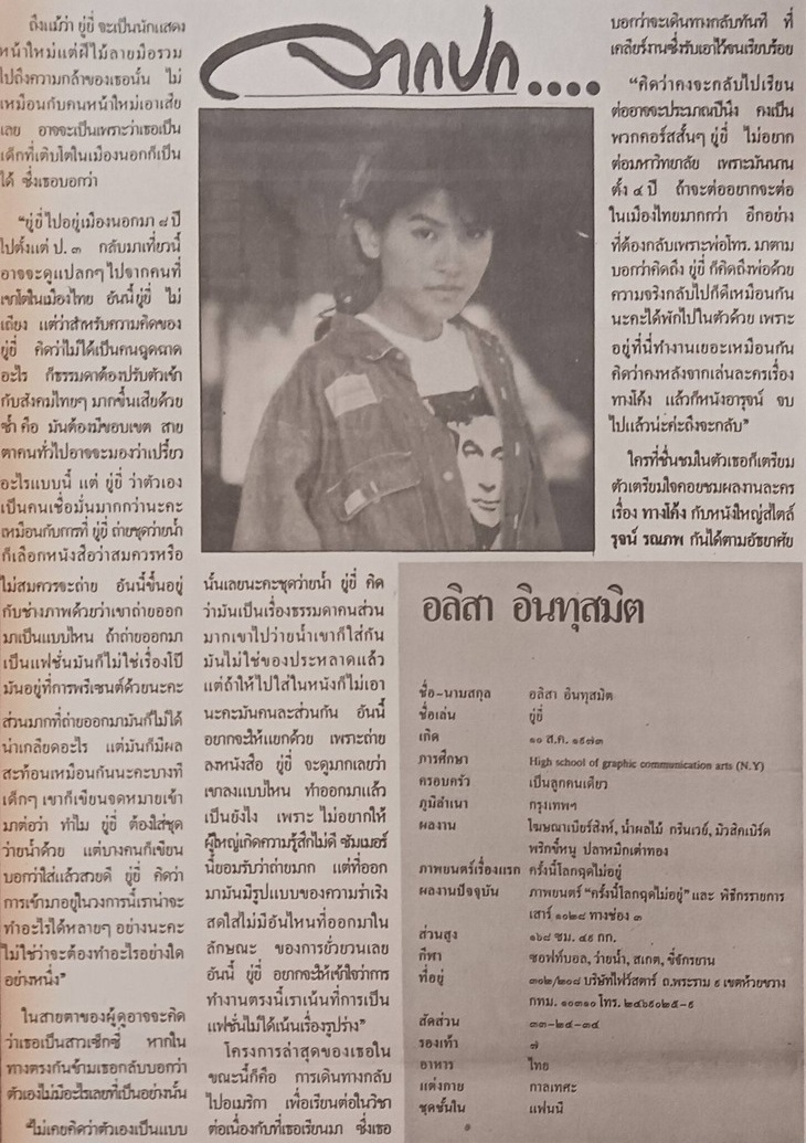 บทสัมภาษณ์โดย เสาวนีย์ ชินะกุลตีพิมพ์ในหนังสือ "แนวหน้าสุดสัปดาห์"ฉบับวันที่ 16-22 ธันวาคม 2537สวัสดี.