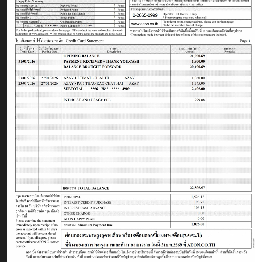 แจ้งยกเลิกประกันไปวันที่แล้วแต่ Aeon ยังตัดในรอบบิลอยู่