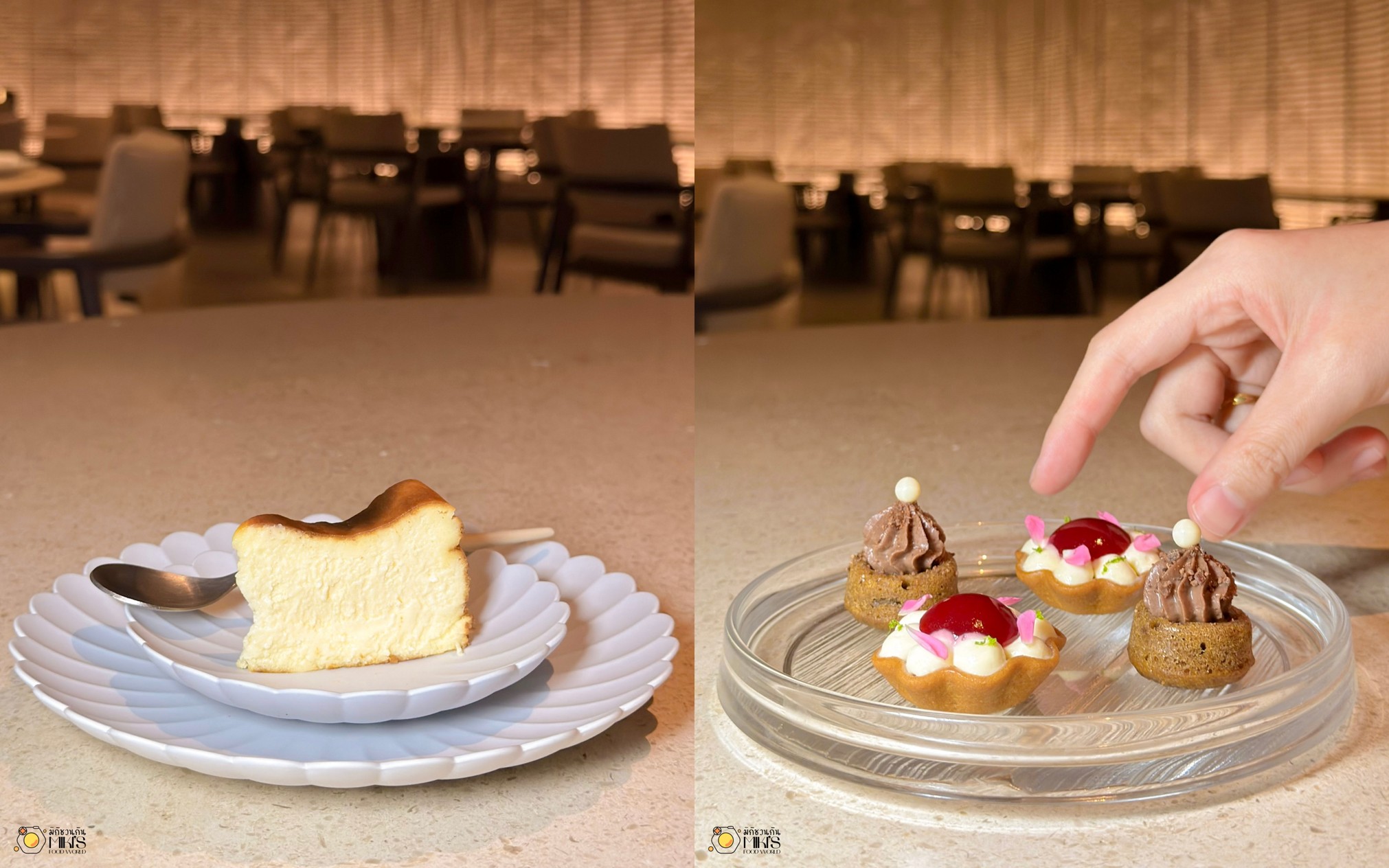 Petit Four ปิดท้ายด้วยเซอร์ไพรส์จากภรรยาเชฟ ทั้งชีสเค้กหน้าไหม้ ช็อกโกแลตบานาน่า และทาร์ตเบอร์รี่ ที่ภรรยาเชฟทำเองทั้งหมด อร่อยจนอยากขอชิมอีกหลายคำ