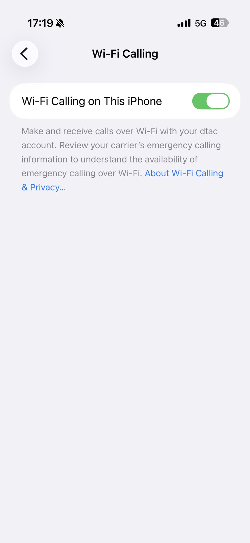 กดเปิด wifi calling แล้ว กดยอมรับเงื่อนไขให้บริการของ dtac แล้ว พอกลับไปหน้า cellular wifi calling ยังขึ้น off เหมือนเดิมครับ - เครื่อง iphone 16 pro ios 18.7.2