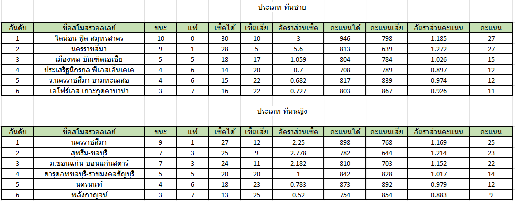 ตารางคะแนน วอลเลย์บอล ไทยลีก ประจำสัปดาห์ที่ 6 วันที่ 27 กุมภาพันธ์ - 1 มีนาคม 2569