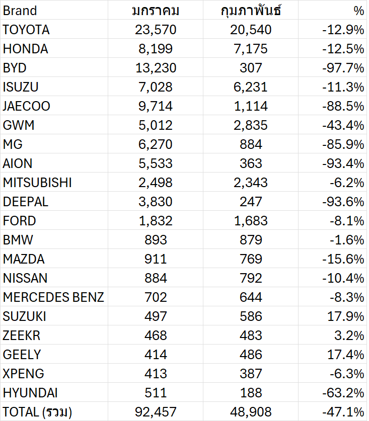 และรายล่า ลงแรง BYD ลดลง -97%