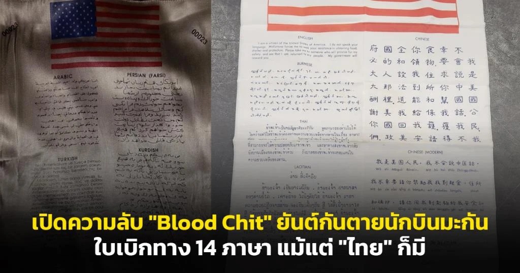 เปิดความลับ "Blood Chit" ยันต์กันตายนักบินมะกัน! ใบเบิกทาง 14 ภาษา แม้แต่ "ภาษาไทย" ก็มี