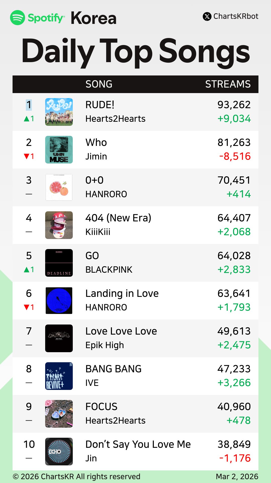 Hearts2Hearts “RUDE!” ขึ้นสู่อันดับ 1 บนชาร์ต Spotify Daily Top 200 Songs Korea