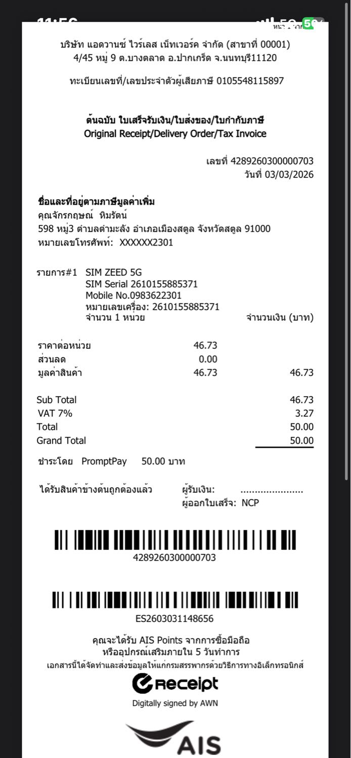 AIS สั่งซื้อeSim แต่ไม่ได้QR code