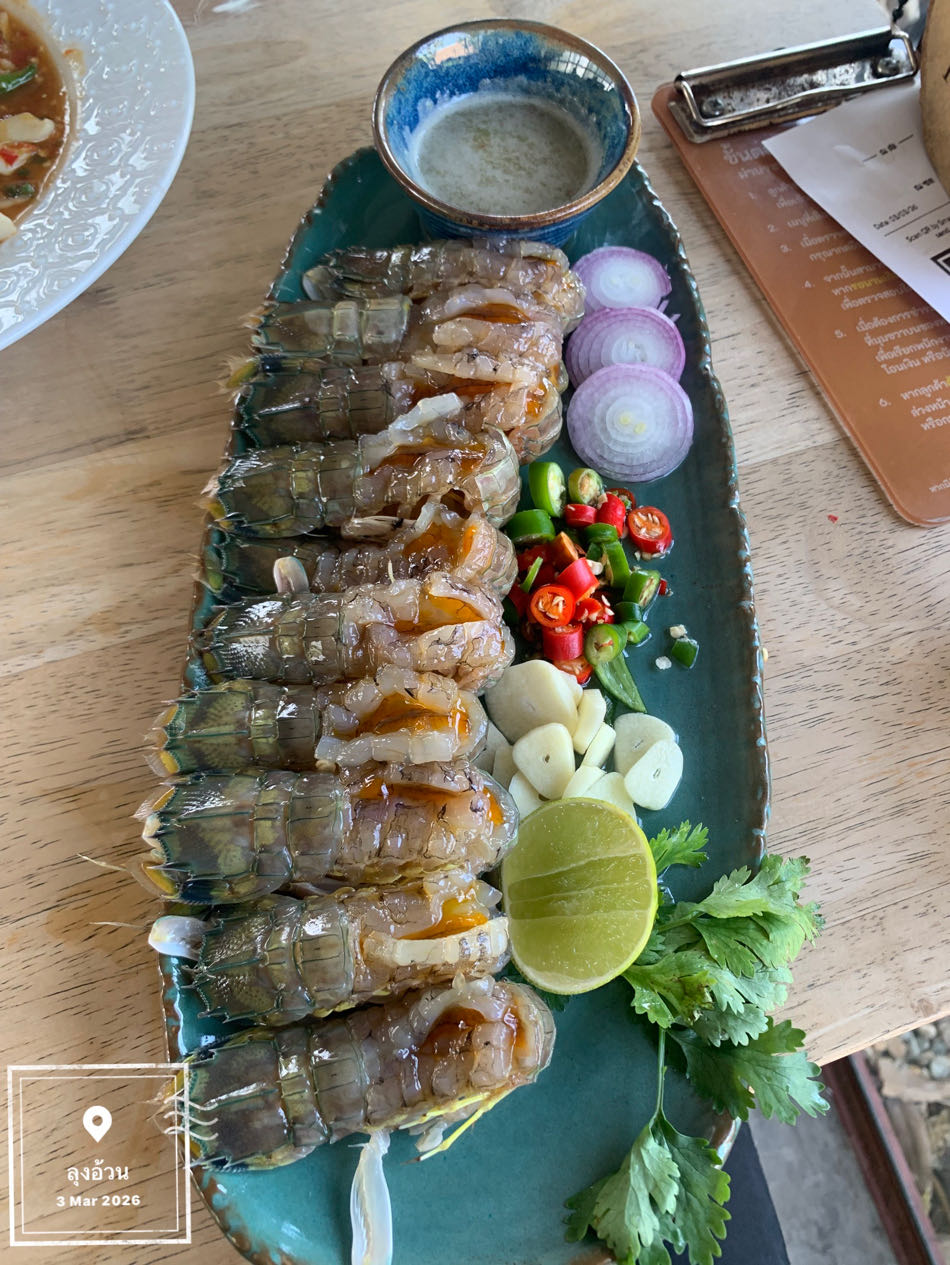 กุ้งดองน้ำปลากวน กุ้งใหญ่มาก จิ้มน้ำจิ้มซีฟู้ด กินกับกระเทียมโทนดอง