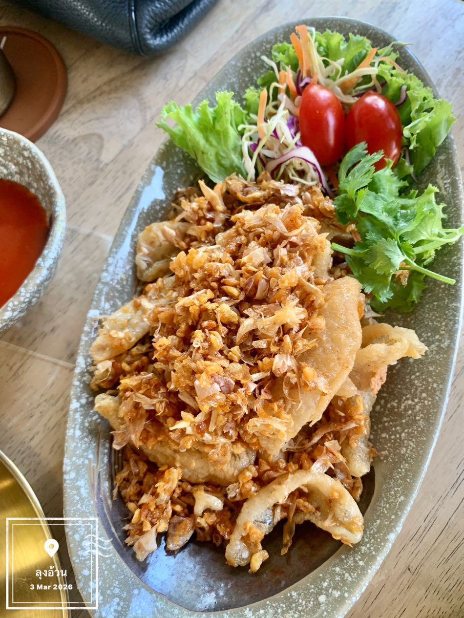 ต้องจิ้มซอสพริกศรีราชา กระเทียมกรอบรสเค็มนำ อร่อยดี