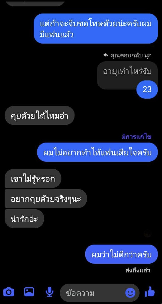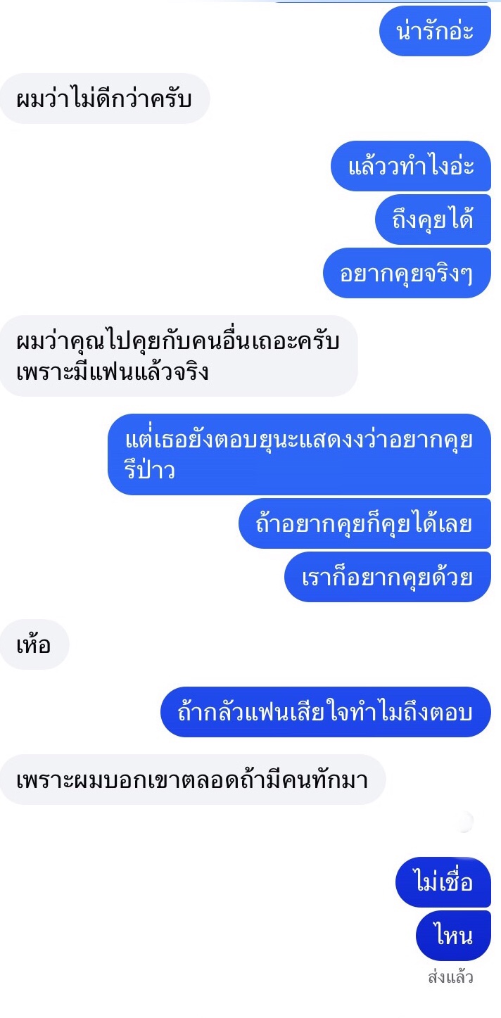 เราได้จ้างให้คนที่รับลองใจทักไปถามสถานะคุยเต๊าะจีบแล้วแฟนเราตอบแบบนี้ทุกคนคิดว่าเค้าดีจริงมั้ยคะ เค้าจะแคปมาบอกตลอด