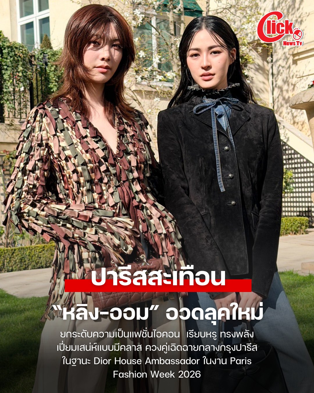 3 มีนาคม 2569 แจ้งเกิดบนเวทีแฟชั่นระดับโลก เป็นที่เรียบร้อย สำหรับสองนางเอกตัวท็อป “หลิงหลิง-ศิริลักษณ์ คอง” และ “ออม-กรณ์นภัส เศรษฐรัตนพงศ์” ล่าสุด ควงคู่เฉิดฉายกลางกรุงปารีส ประเทศฝรั่งเศส ในฐานะ Dior House Ambassador เข้าร่วมชมแฟชั่นโชว์สุดยิ่งใหญ่ Dior Women’s Autumn/Winter 2026 ณ Tuileries Gardens ในงาน Paris Fashion Week 2026