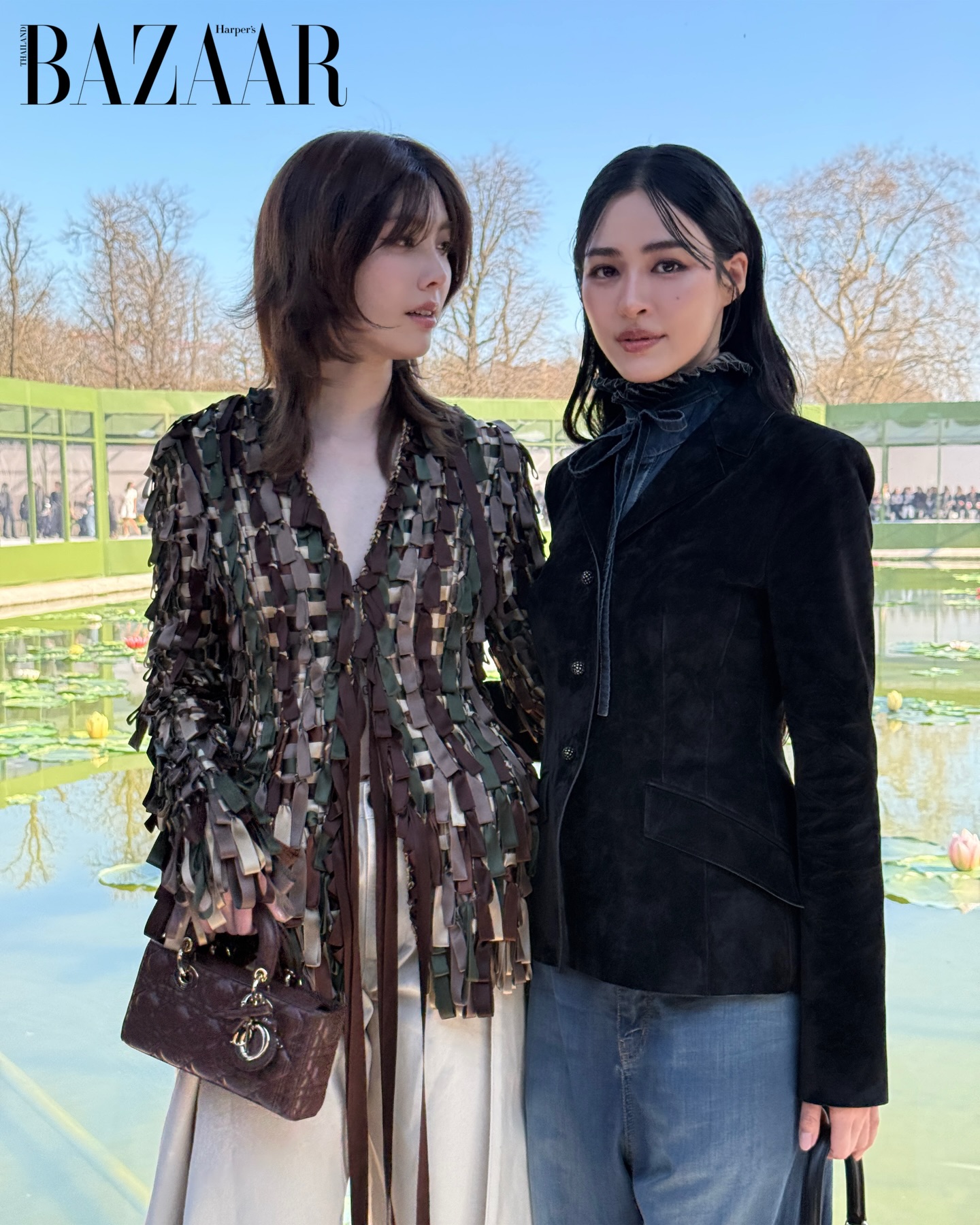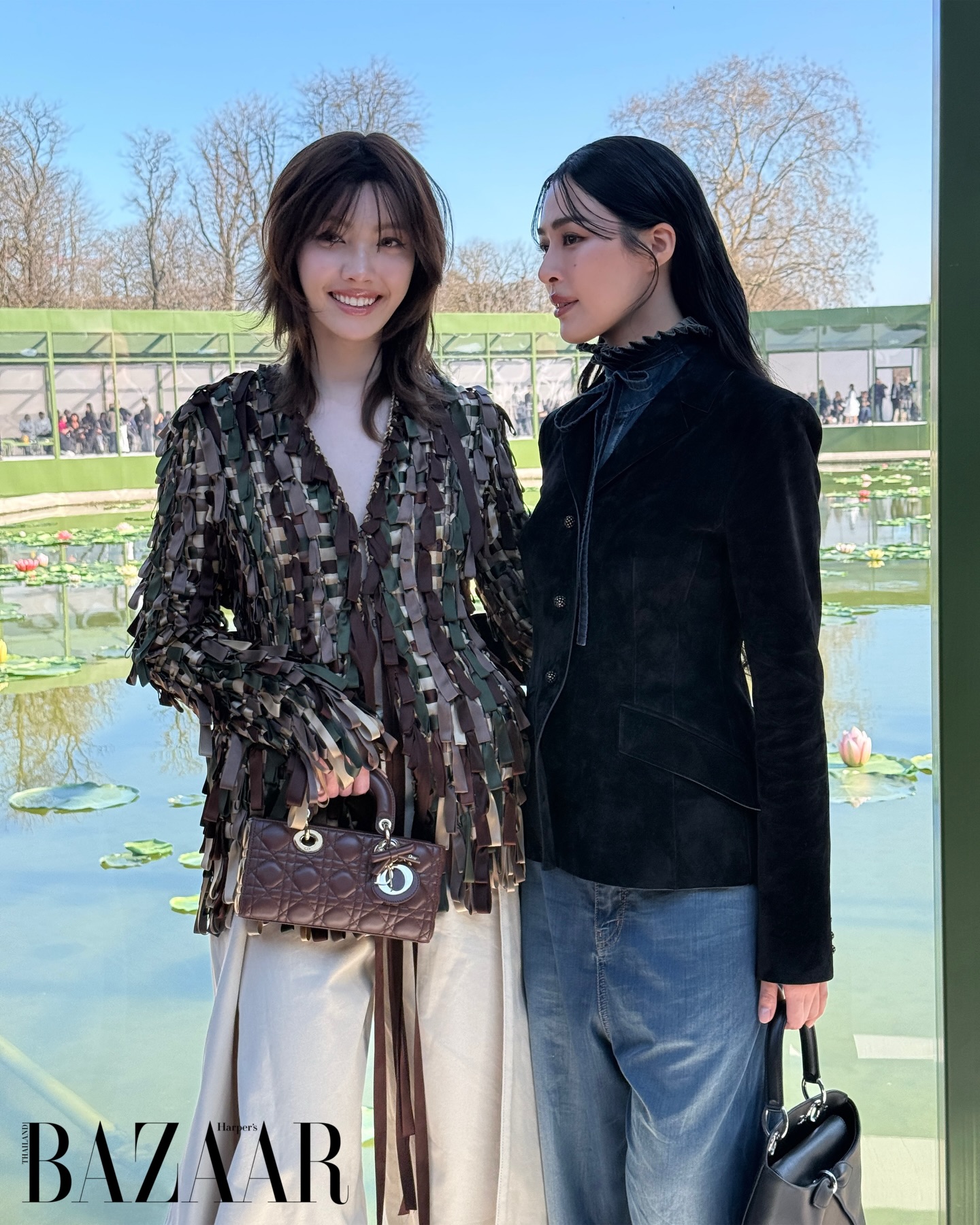 #BAZAARRunway เก็บตกภาพของสองนักแสดงสาว “หลิงหลิง คอง” และ “ออม-กรณ์นภัส” สองเฮ้าส์แอมบาสเดอร์ของ Dior ที่เดินทางมาร่วมชมโชว์คอลเลกชั่นสุภาพสตรีประจำฤดูใบไม้ร่วง/ฤดูหนาว 2026 ที่จัดขึ้น ณ Tuileries Gardens กรุงปารีส ประเทศฝรั่งเศส