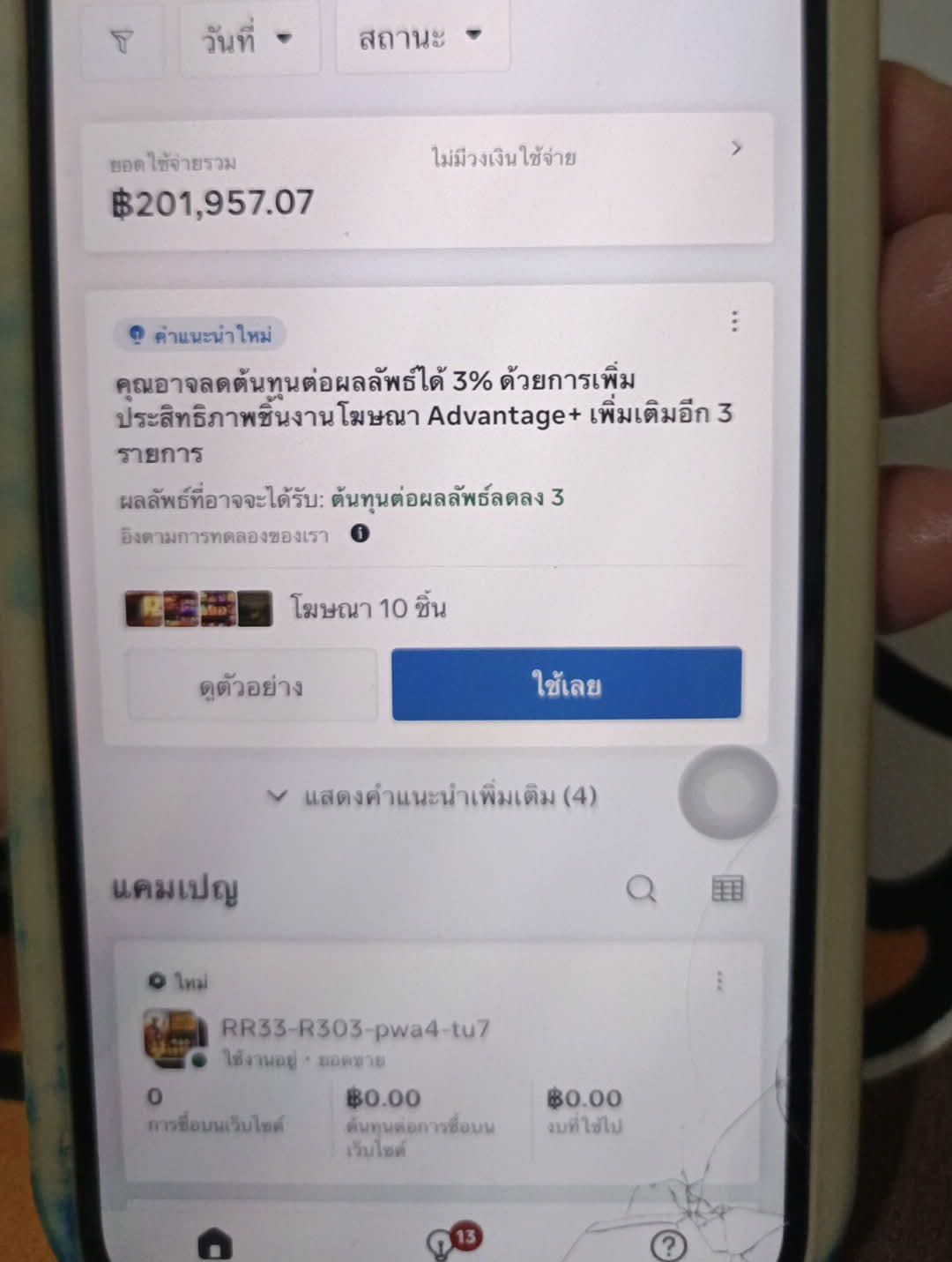 จนมาวันนี้ วันที่ 2-3 มีนา 69 มันได้ใช้เฟสบุ๊กของเรา ไป #ยิงแอดโฆษณาเว็บพนันหลายตัวมาก นับได้ads.ประมาณ39 + แล้วยอดจ่ายเยอะมาก หลังร้อยถึงพัน สูงสุด 2แสนบาท