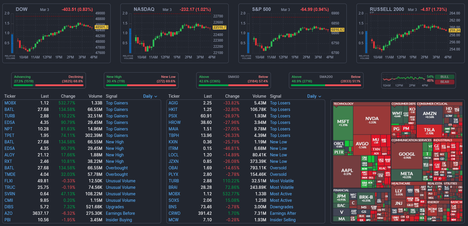 ดัชนีหลักทั้งสามของตลาดสหรัฐปิดในแดนลบ โดยดัชนีอุตสาหกรรมดาวโจนส์ หรือ Dow Jones Industrial Averageปรับตัวลดลง 289.77 จุด หรือ 0.59% ปิดที่ 48,615.01 จุด ขณะที่ดัชนี S&P 500 ลดลง 51.47 จุด หรือ 0.75% ปิดที่ 6,830.15 จุด และดัชนี Nasdaq Composite ร่วงลง 188.62 จุด หรือ 0.83% ปิดที่ 22,560.24 จุด