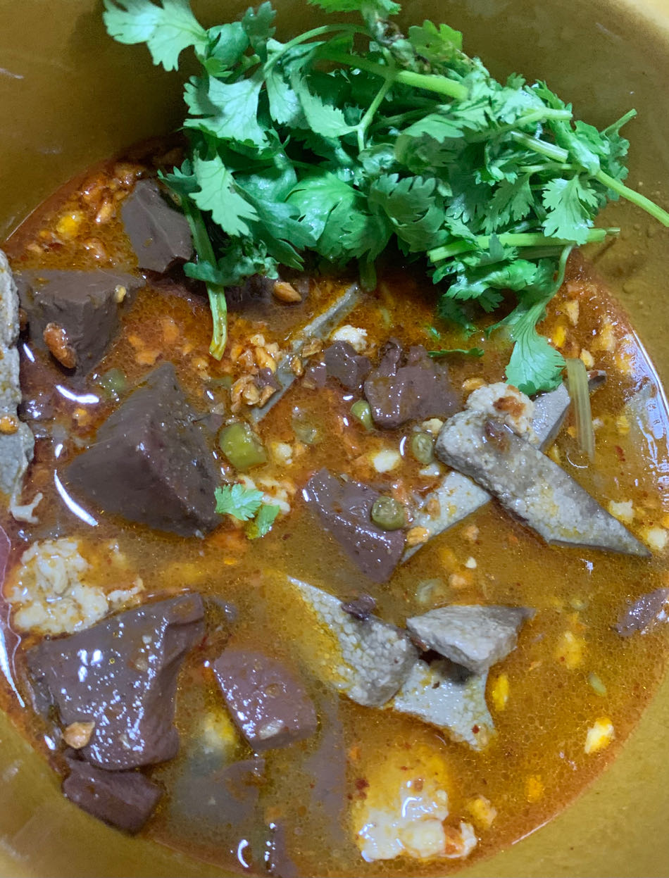 เครื่องต้ม ที่บ้านชอบกินเลือดหมูก้อนใส่ลงไปด้วย ตับหมู หมูสับปั้น ต้มน้ำซุปใส่รากผักชีและกระดูกหมู