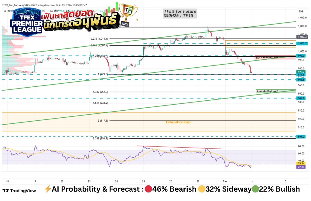 ⚔️ แนวต้าน (Resistance) : 993-995 (จุดร่วม 5 Indicators)
