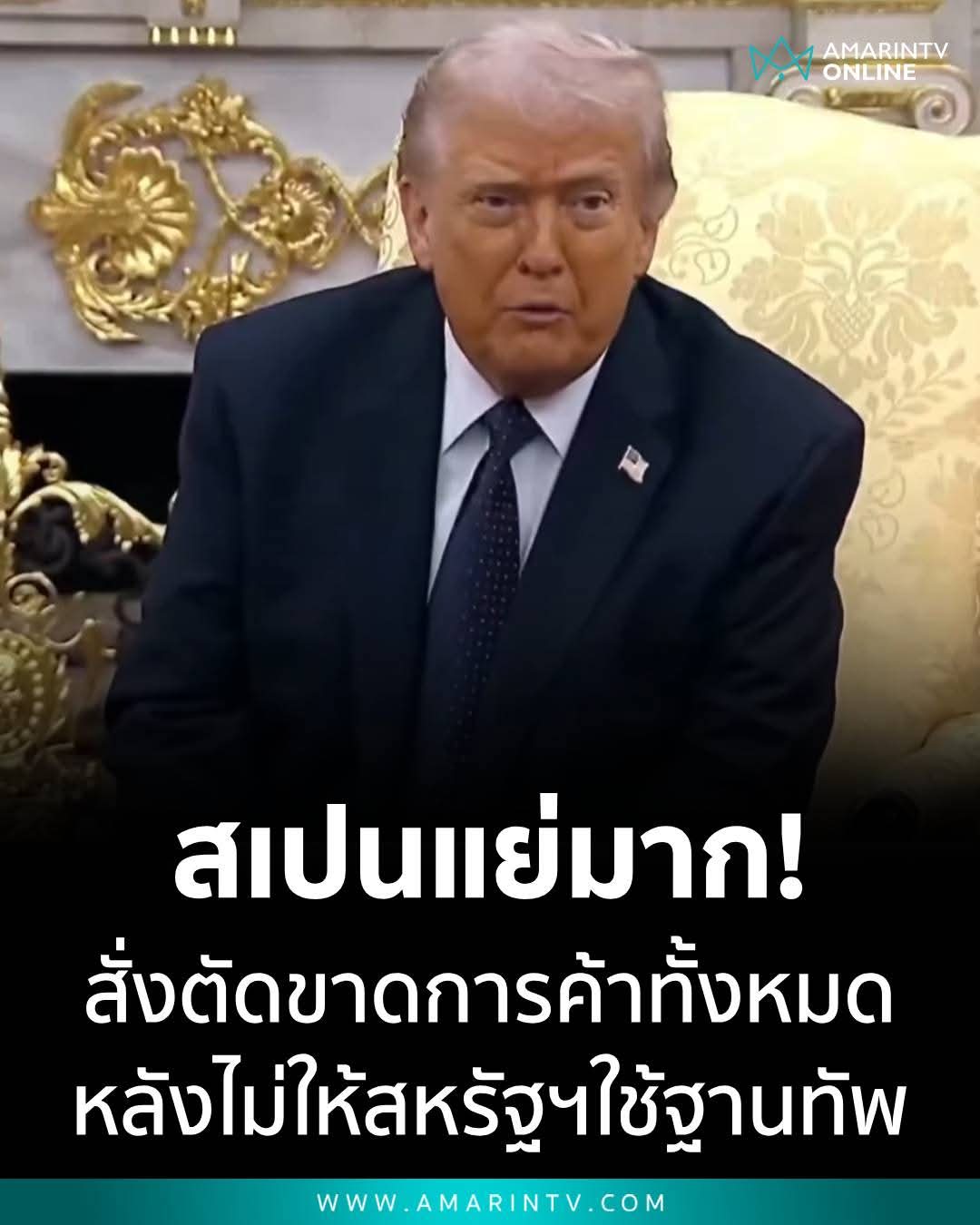 "โดนัลด์ ทรัมป์" สั่งตัดขาดการค้ากับสเปนอย่างเต็มรูปแบบ หลังถูกปฏิเสธไม่ให้ใช้ฐานทัพในการโจมตีอิหร่าน ลั่น "สเปนแย่มาก"