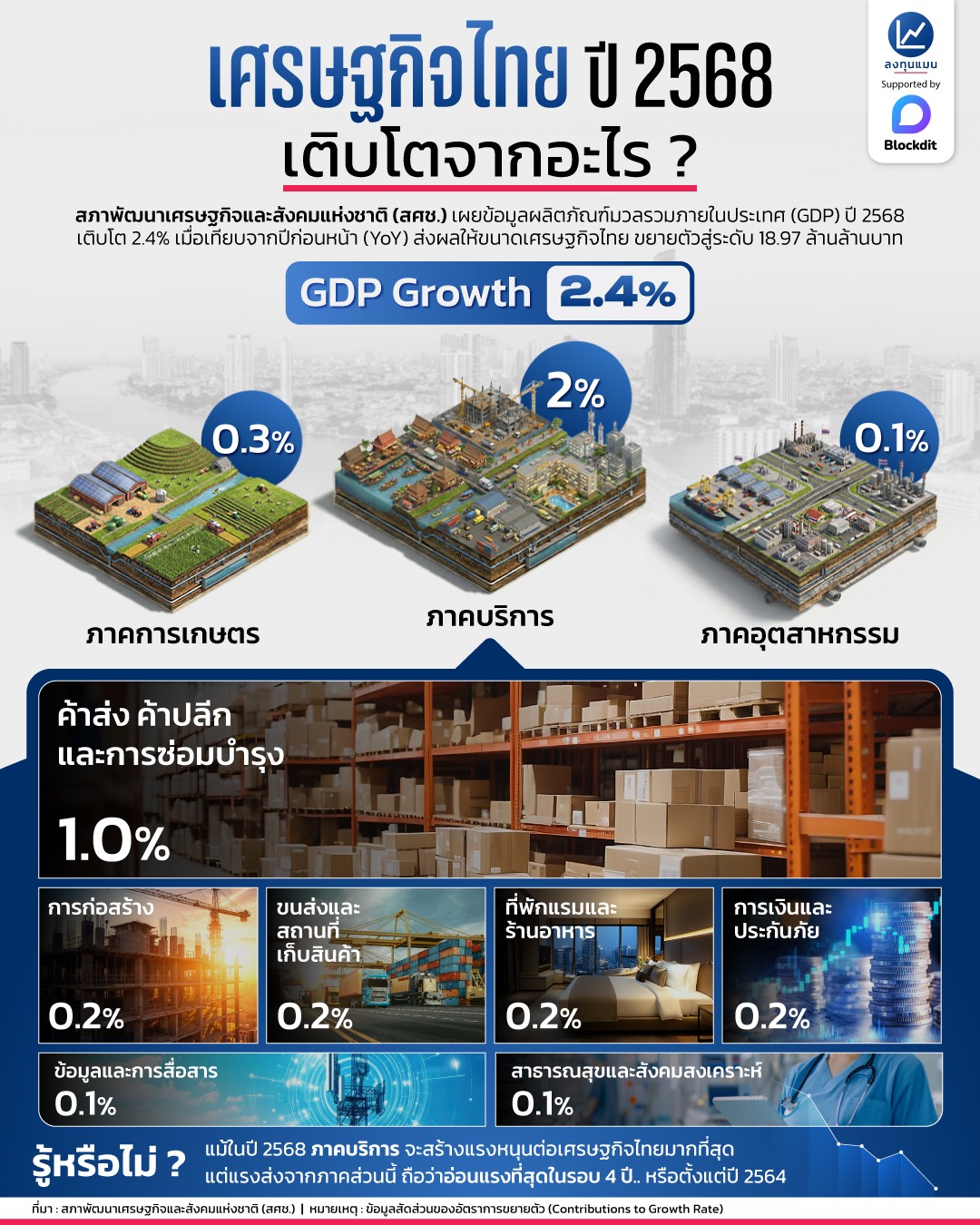 GDP 2568 ธุรกิจภาคบริการ - เกษตร - อุตสาหกรรม นำการเติบโตของเศรษฐกิจ