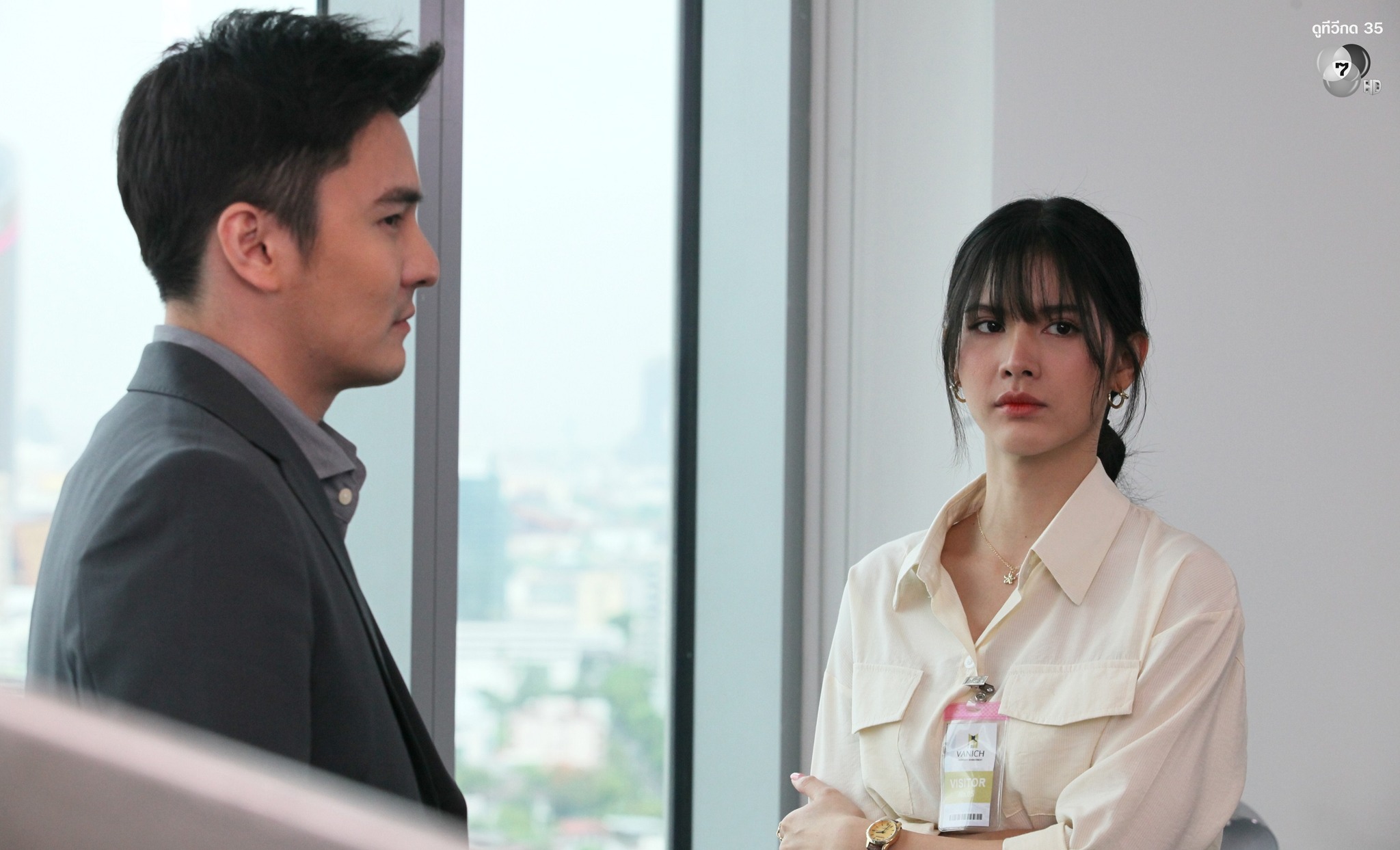 ✅วรัช #ธันวาสุริยจักร จึงช่วยยื้อเวลา ด้วยการแกล้งชวนคุยเรื่องงาน เพื่อถ่วงเวลาไม่ให้ออกไป จนทำให้ทั้งคู่ทะเลาะกัน🫢