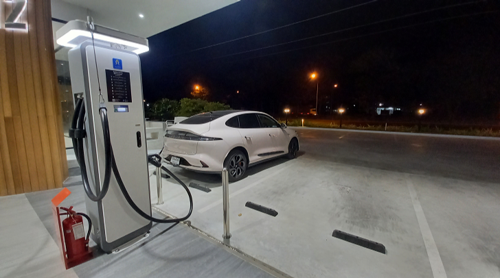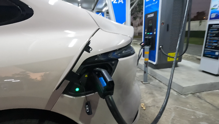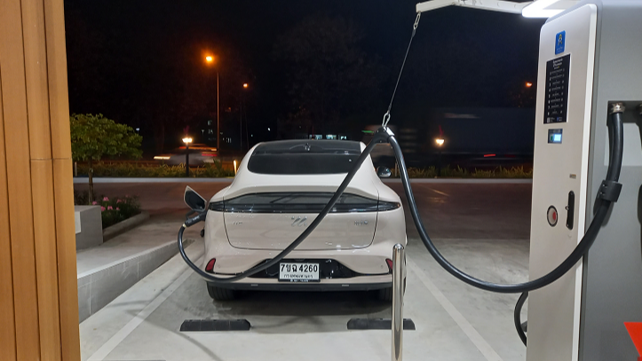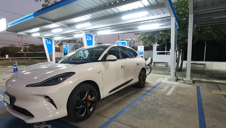 ในตอนนั้นค่าเฉลี่ยพลังงานที่ทำได้ 15.5 kwh หลังจากนั้นไม่ถ่ายอะไรเลยออกมามุ่งตรงกลับบ้าน มาแวะชาร์จอีกทีที่สิงห์บุรี แบตน่าจะเหลือประมาณ 30 นิดๆ มาชาร์จที่ตู้ Huawei ตู้สีเทาน่าจะจ่ายไฟ 240 kw / 300 A ตู้สีแดงจ่าย 480 kw/ 500 A ผมเลือกตู้เทาริมสุดชาร์จไป 90% มั้ง แล้วถอดออก ต้องบอกว่าเร็วมาก 20 กว่านาที 90 แล้วซึ่งเวลาตอนนนั้น 5 ทุ่มได้มั้ง ไม่มีใครเลย ผมเลยหลับไปประมาณ 1 ชั่วโมงหลังจากกินยาไป
